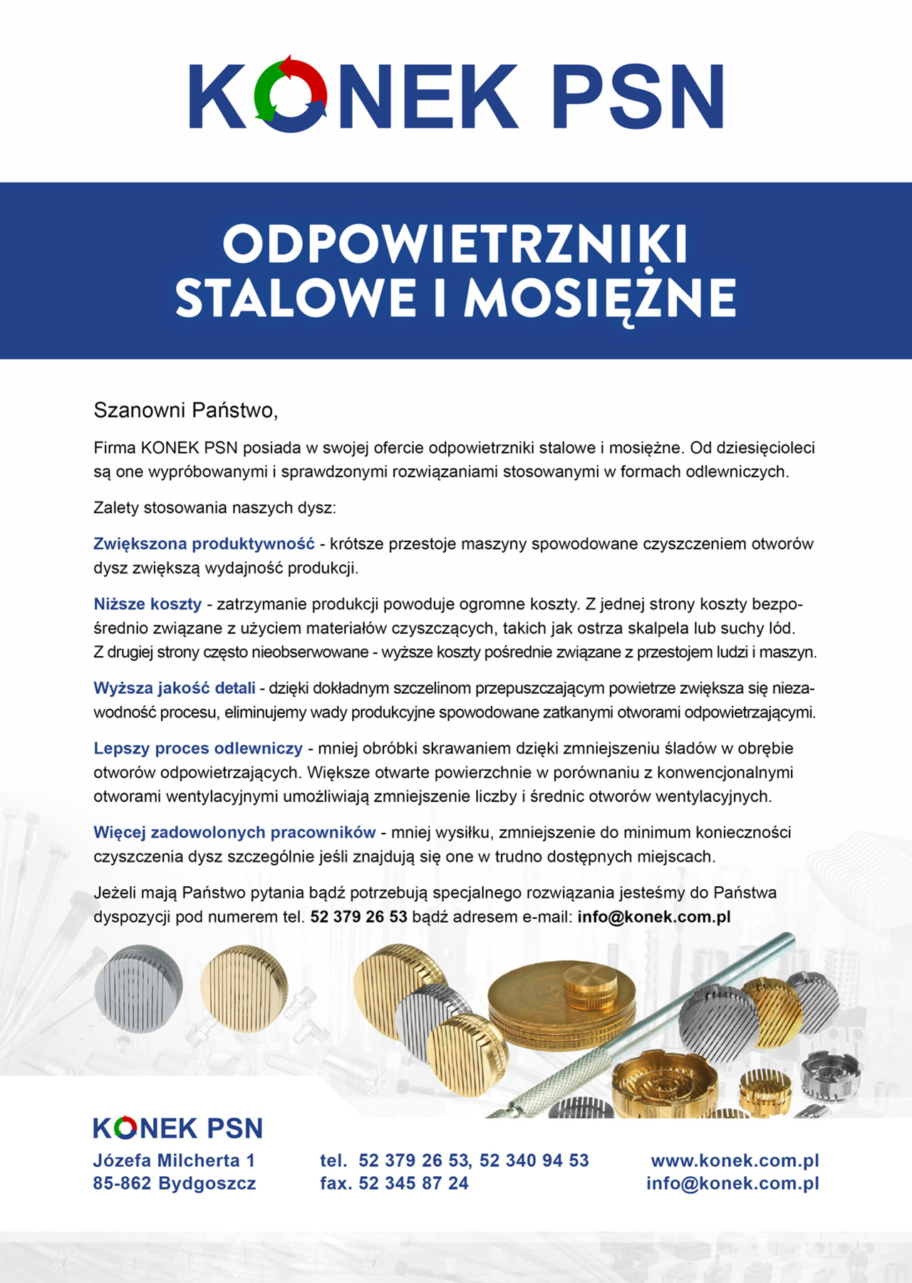 KONEK PSN offers steel and brass vents. They have been tried and tested solutions in casting moulds for decades.