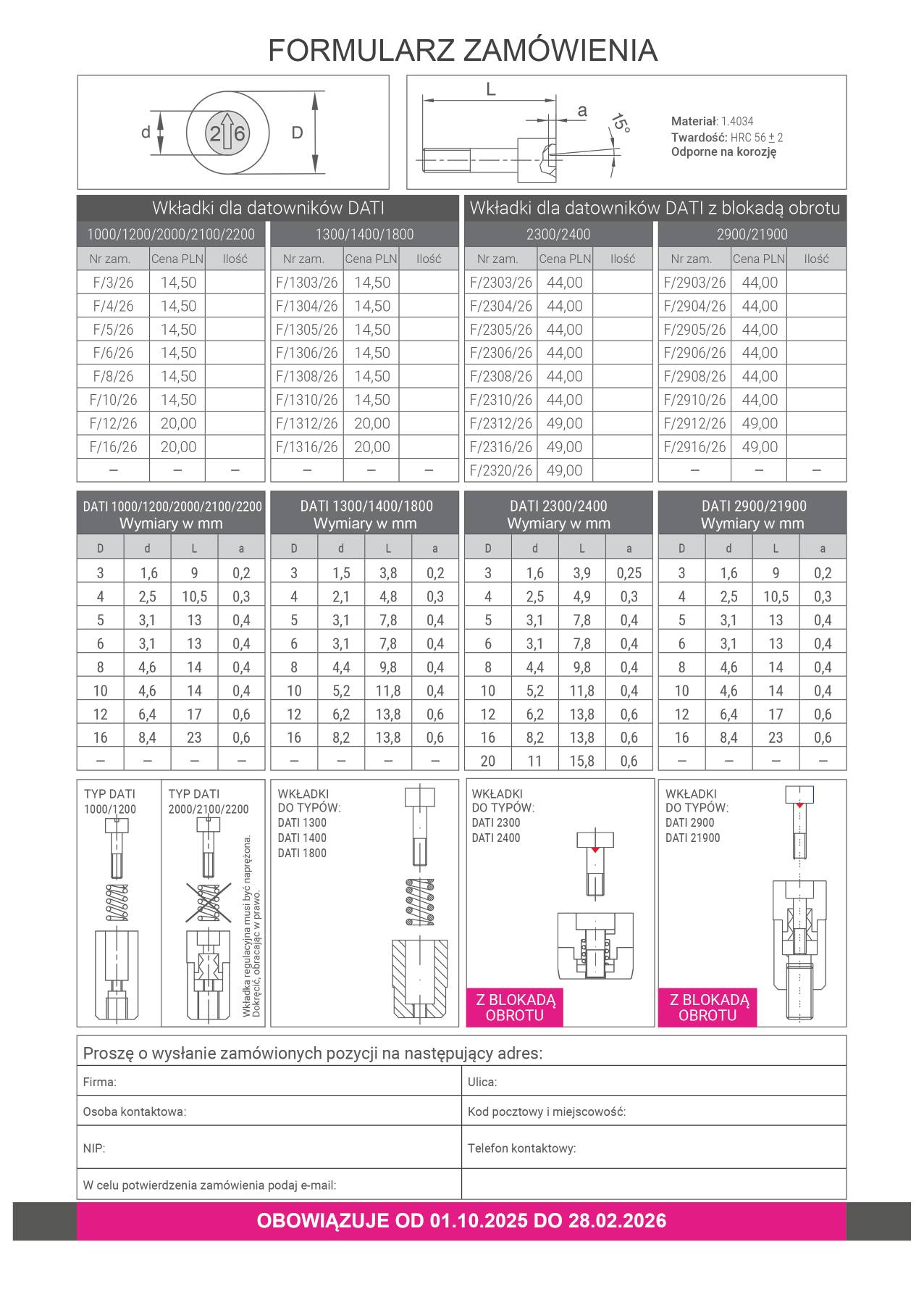 Nadszedł czas, aby zaopatrzyć się we wkładki datowników na nowy rok. Zamów już teraz nowe wkładki datowników na rok 2026. W naszej specjalnej ofercie od 1 października 2025 do 28 lutego 2026 proponujemy wymianę wkładek typu F na rok 2026 w najlepszej cenie na rynku.